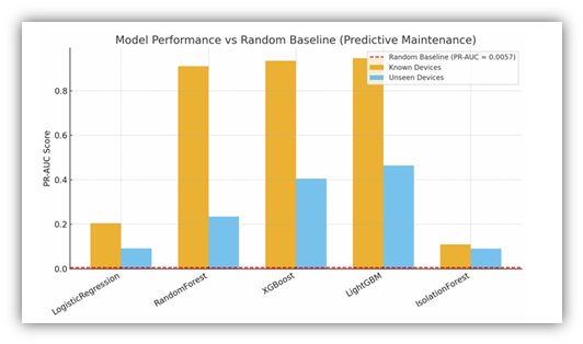 We evaluated models such as Logistic Regression, Random Forest, XGBoost, and LightGBM. LightGBM performed best by providing high precision and broad coverage when predicting failures, even for devices not seen during training. Our engine delivered 63 percent precision, meaning most alerts were correct, and 27 percent recall, missing few true failures. Compared to random selection, we achieved 80 percent better alert coverage and 165 percent higher alert accuracy.